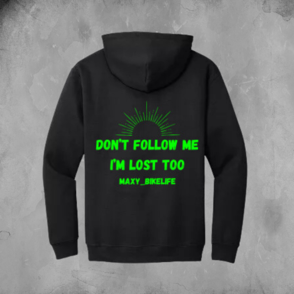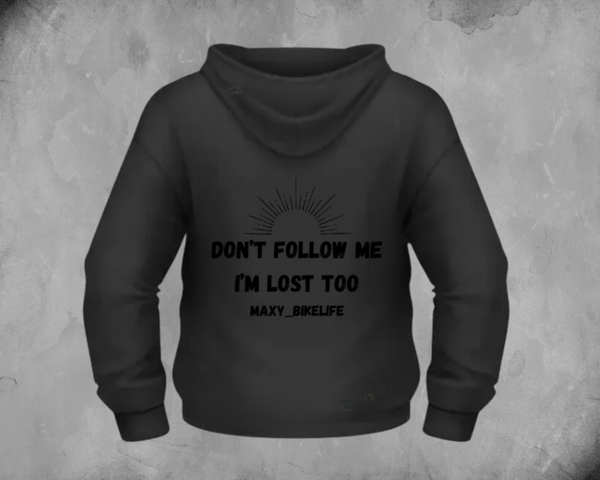 Stand out with this unique hoodie! The hoodie has the 'Wait for me I got little legs' design on the back and the bunny logo on the front. It's perfect for daily use or while riding.
