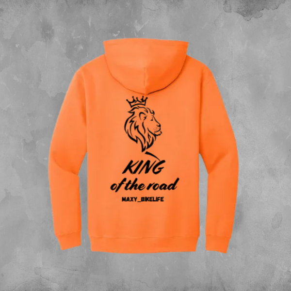 Stand out with this unique hoodie! The hoodie has the 'King of the road' design on the back and the bunny logo on the front. It's perfect for daily use or while riding.